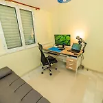 The property includes a bathroom with a separate toilet. A hair dryer and towels are also at your disposal.